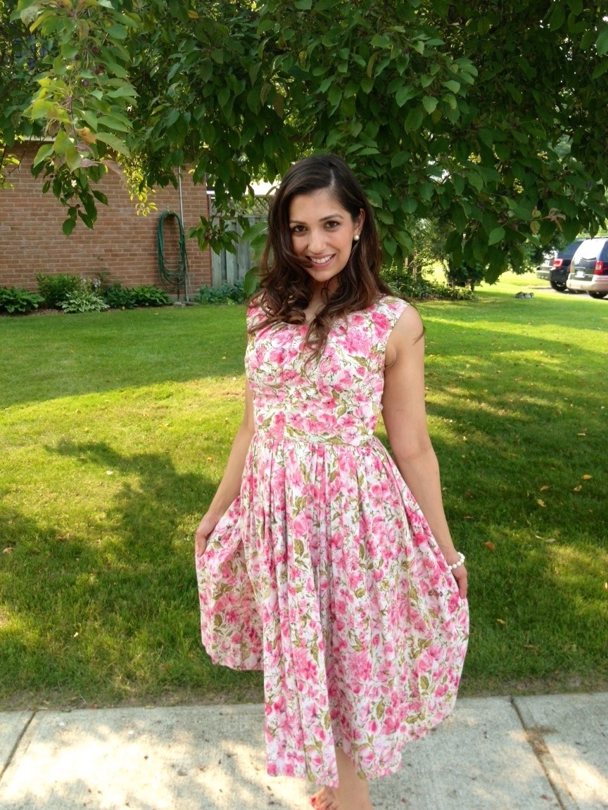 So, upstairs I was while my friends were busy preparing the living room and kitchen for the shower! Kamelia, one of my bridesmaids, came upstairs to do my hair (which she’s amazing at!) she curled it all in a 1950s fashion to go with the dress that I had bought especially for my shower from Cabaret Vintage on Queen West.
