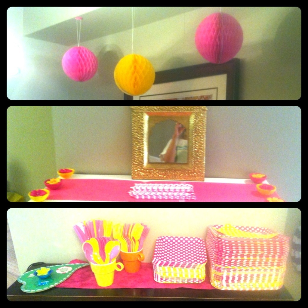 You may remember how I mentioned I wanted to have my Mayoun at Toronto’s renowned Lahore Tikka House. Well, when that didn’t work out I decided I wanted to keep it super casual, and just have it at my brother’s small townhouse. But even though we scaled down the size of the event, the decor still had to be fun! I wanted my mayoun colour scheme to be hot pink and yellow and polka dots because let’s face it, what’s more fun than hot pink and yellow and polka dots?!