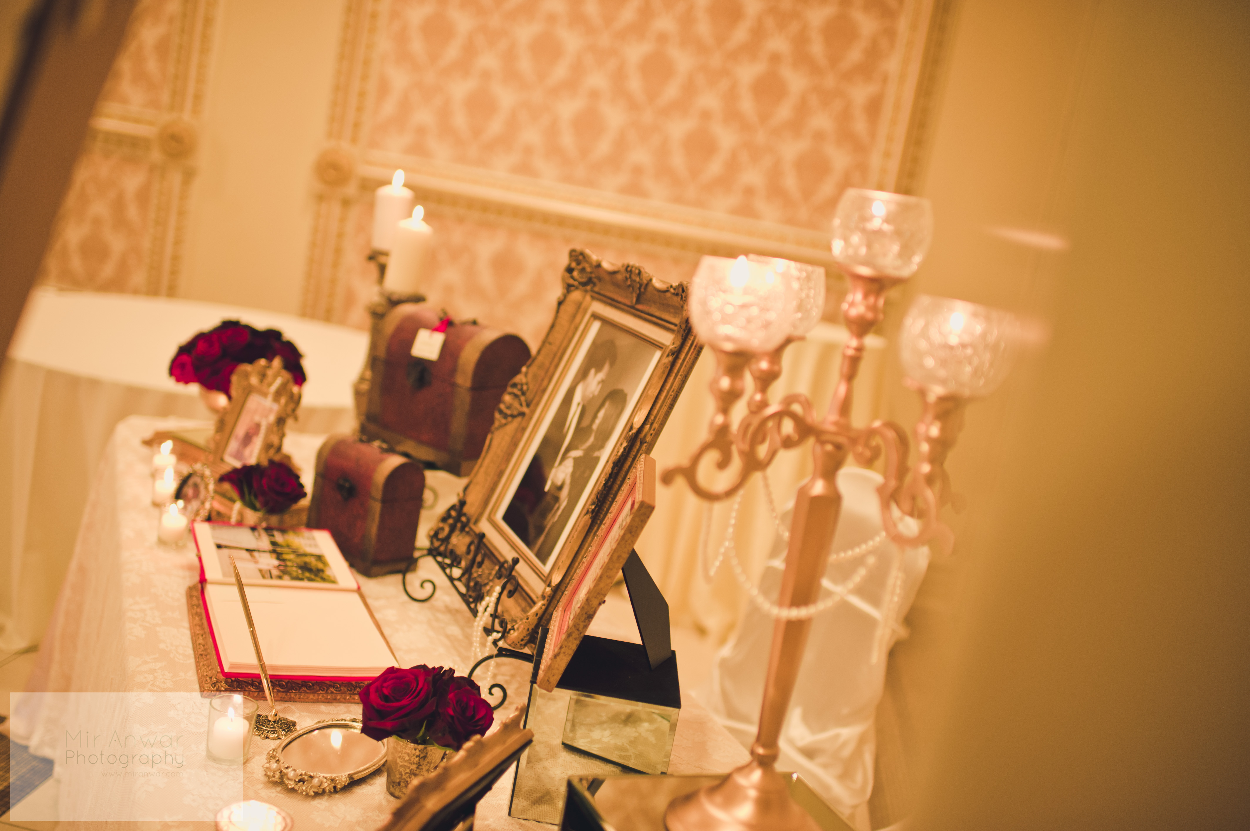 The beautiful work of Amna Rather of Lemon Truffle Designs! My vision was classy; ornate; elegant; timeless…and to me nothing is more classic than red roses and pearls. So, naturally, I wanted my centre pieces to be red roses and candelabras with pearl strands: