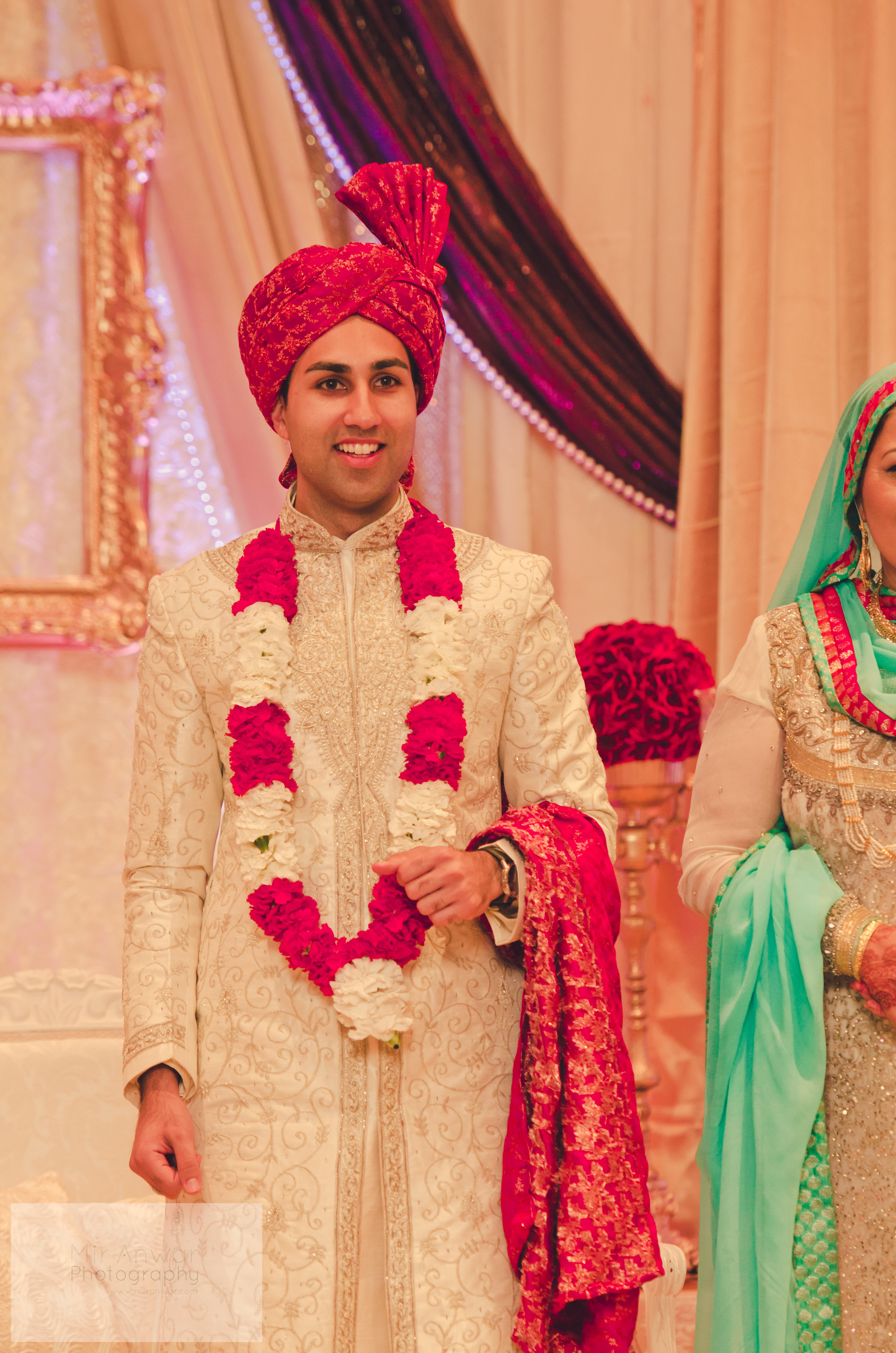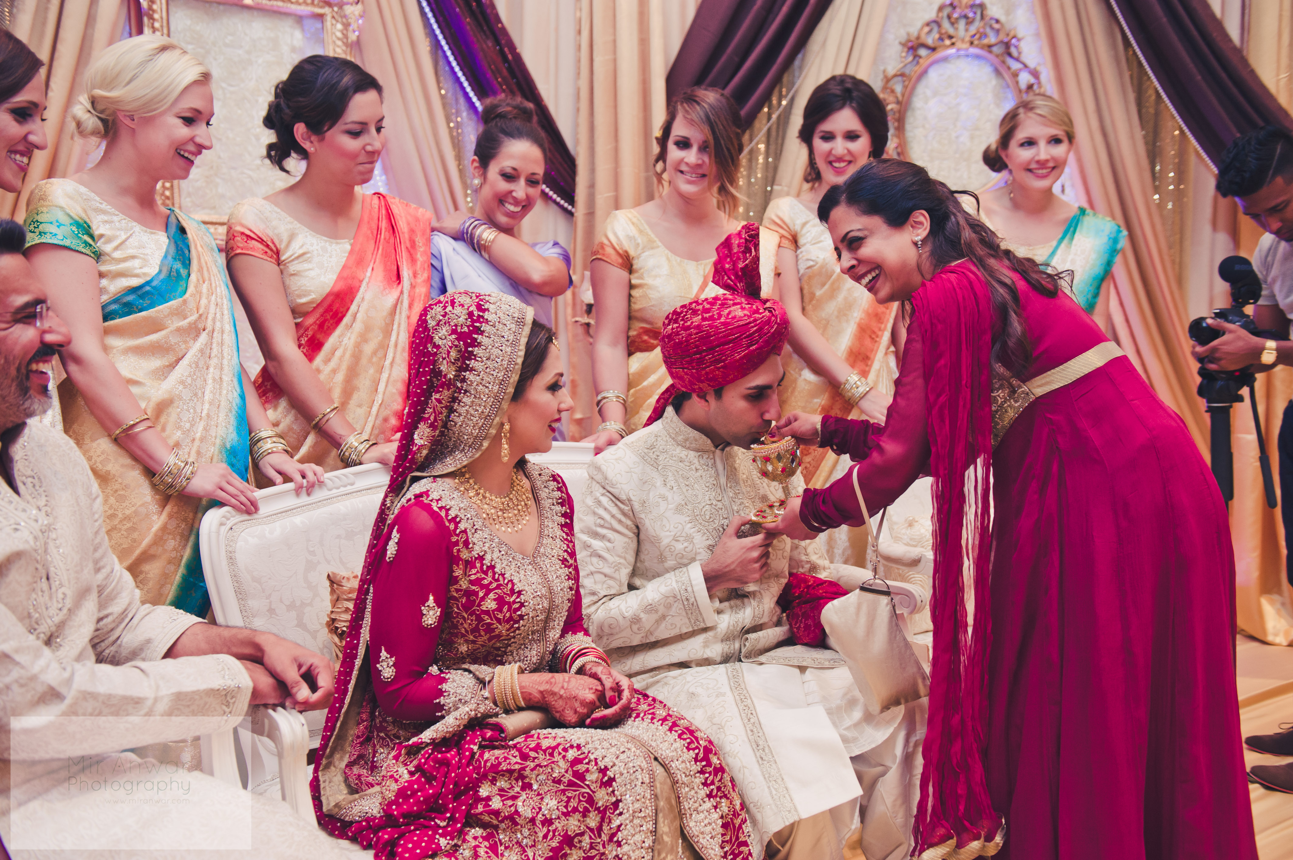 The “dood palai” (custom where your sister feeds the groom a glass of milk…and he gives her money, obvi) Note the special dood palai glass with small roses on it that I brought back from Lahore to match my theme π